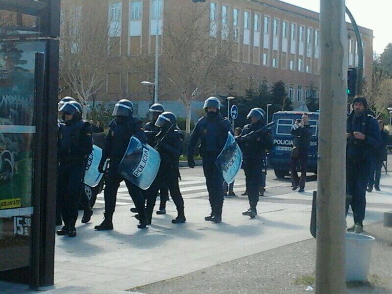Foto de un policía empuñando una porra extensible durante el primer día de huelga en la UCM. Foto de J.Robles.