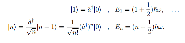 esta es de hecho la energía fundamental (que como vemos NO es cero) del estado de vacío cuántico (también conocida como la oscilación del vació). Más tarde a partir de este estado de vacío, podemos ir aplicando el operador de creación para ir escalando niveles energéticos excitados para un oscilador: