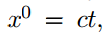 Donde x0 = ct para que las 4 coordenadas del vector posean unidades espaciales ([x]= metros, [c] = metros/segundo, y [t] = segundos, por lo que [ct] = metros). Esto quiere decir que estamos representando el mismo vector inercial (ct, x, y, z) pero con una simbología más simplificada (y más críptica).