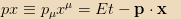 Primero tengamos en cuenta que el resultado de multiplicar el 4-vector momento p con un vector posición x relativista es (en relatividad la coordenada 0 del vector posición es temporal y la coordenada 0 del vector momento es igual a la energía E):