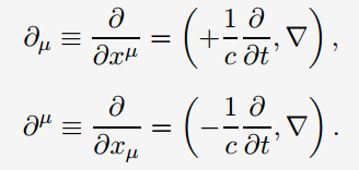 Si trabajamos ahora con sistema de referencia inercial relativista, las coordenadas espacio-temporales vienen determinadas por el vector (ct, x, y, z) que se suelen simplificar con la notación: