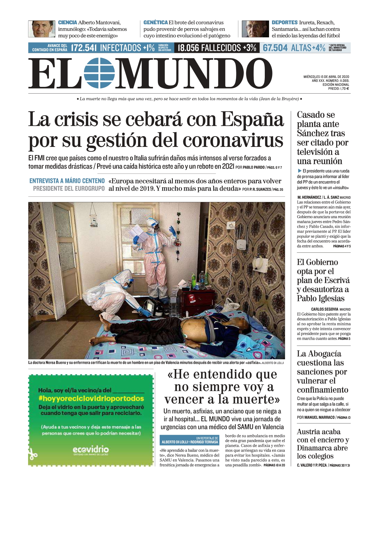 El Mundo publica la foto de una persona fallecida por coronavirus en su cama