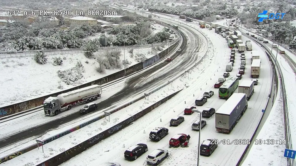Los atrapados en el acceso a Madrid por la A-6 lamentan la falta de avisos previos y el retraso de los equipos quitanieve y de la Guardia Civil: "Nos tenían que haber avisado ayer de no coger el coche".