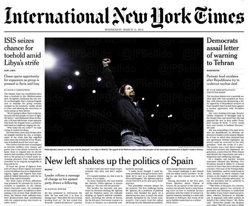 Pablo Iglesias sale en portada de la edición internacional del New York Times.
