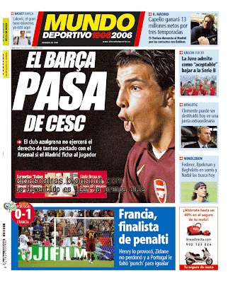 1. Está claro que estoy estaría en portada si en lugar de Cesc hubiese sido Cristiano o Pepe. No tengo la menor duda